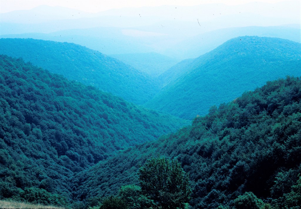 Contrasting landscape views: the fragmented landscape of Devon and the continuous forest in Bukk National Park, Hungary.
