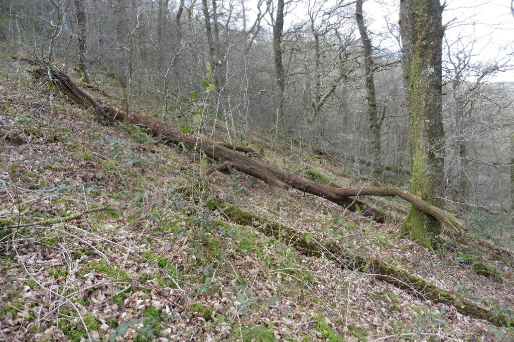 Long-fallen trees in 2022; probably from the same event that had caused windthrow seen in 1997.