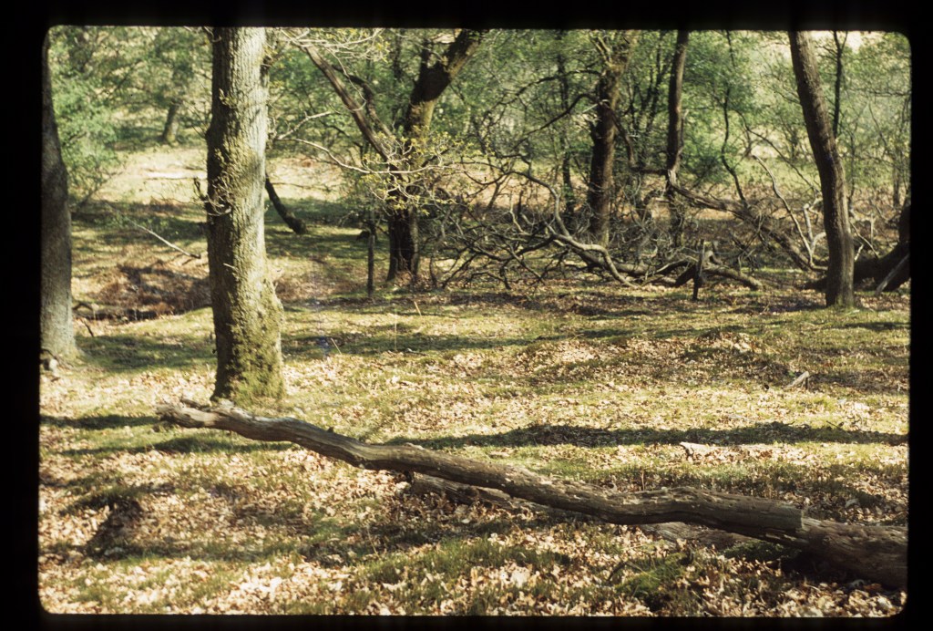 A few mature oak trees had blown over in last winter’s storms, but there were also a lot of old-fallen oaks from, I guessed about 30 years ago. Slides from the 1997 visit (unfortunately some very dark) show relatively recent blown trees, so probably the Burns Night storm of 1990 was responsible.Associated with some of these blowdown gaps were distinct clumps of birch.
