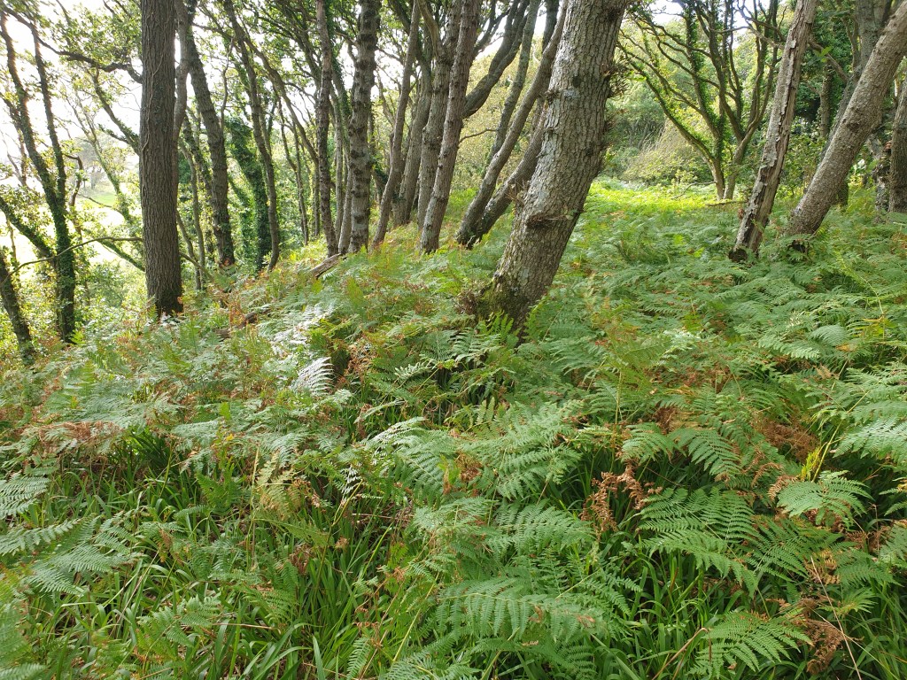 In the late 1970s I did some surveys in the woods along Loch Sunart (I hope to revisit them this summer, but that is a different story). What amused me on that first occasion was ticking the Animals Seen box on the woodland recording form and writing in ‘Grey seal’! It was hauled up on a rock well under the canopy of the oaks, as they hung out over the waters of the sea-loch. Sea-bordering oakwoods are also a feature of the rias, the drowned Cornish valleys along the Helford and Fal rivers. Their lower branches extend out barely above the water at high tide.