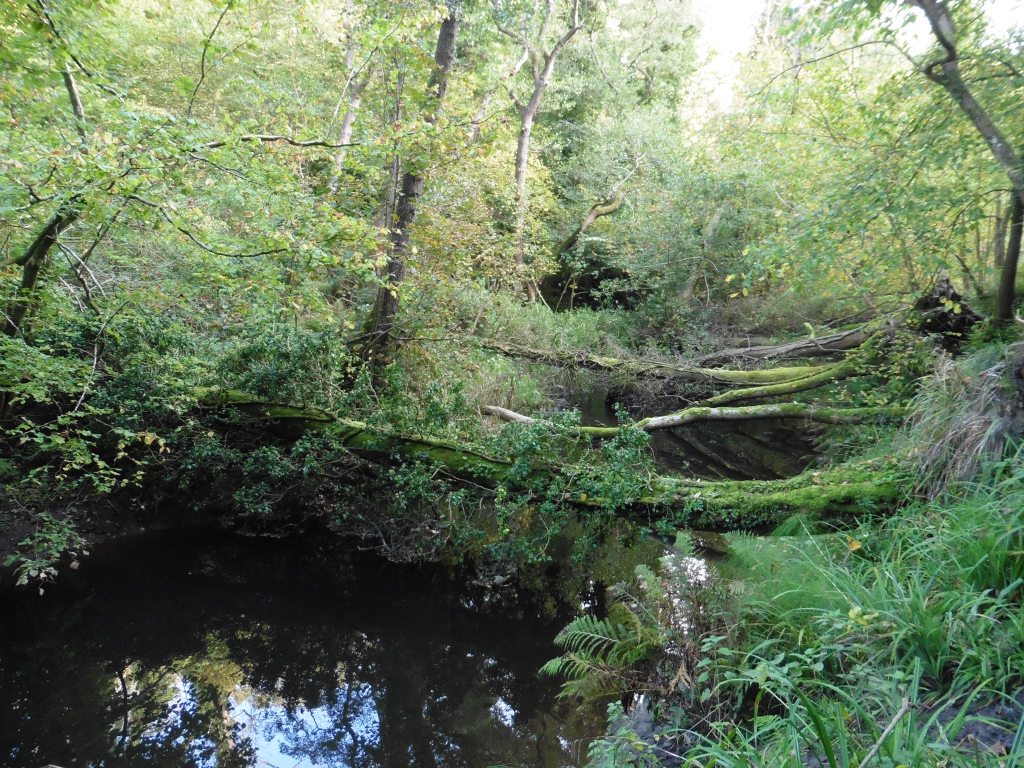 Forge Valley (October 2025): beech-sycamore plantation on slopes; collapsed ash across the stream in the valley bottom; oak on the acidic upper slopes.